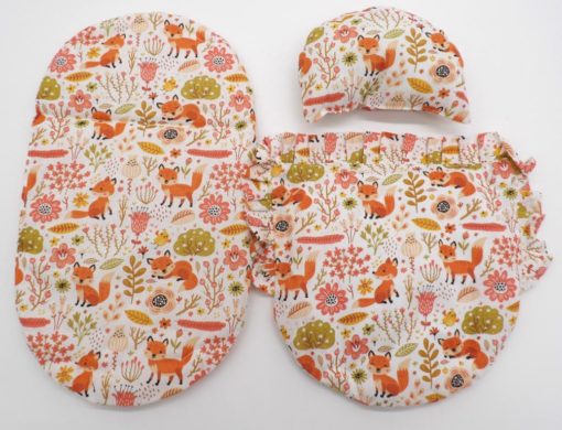 Das 3-teilige Bettchen für den Puppenwagen ist ein handgefertigtes Unikat, daher sind kleine Abweichungen möglich.