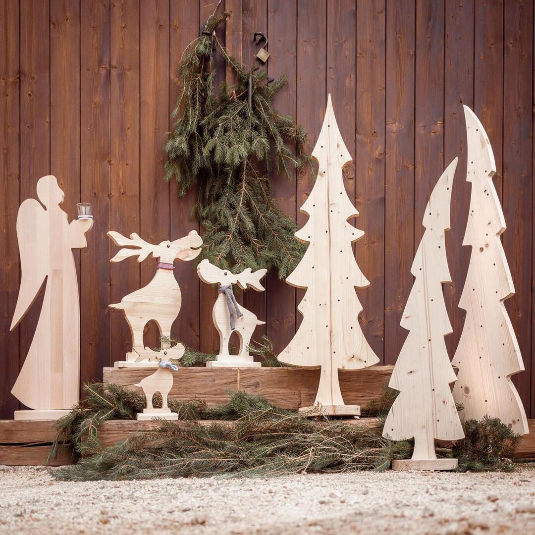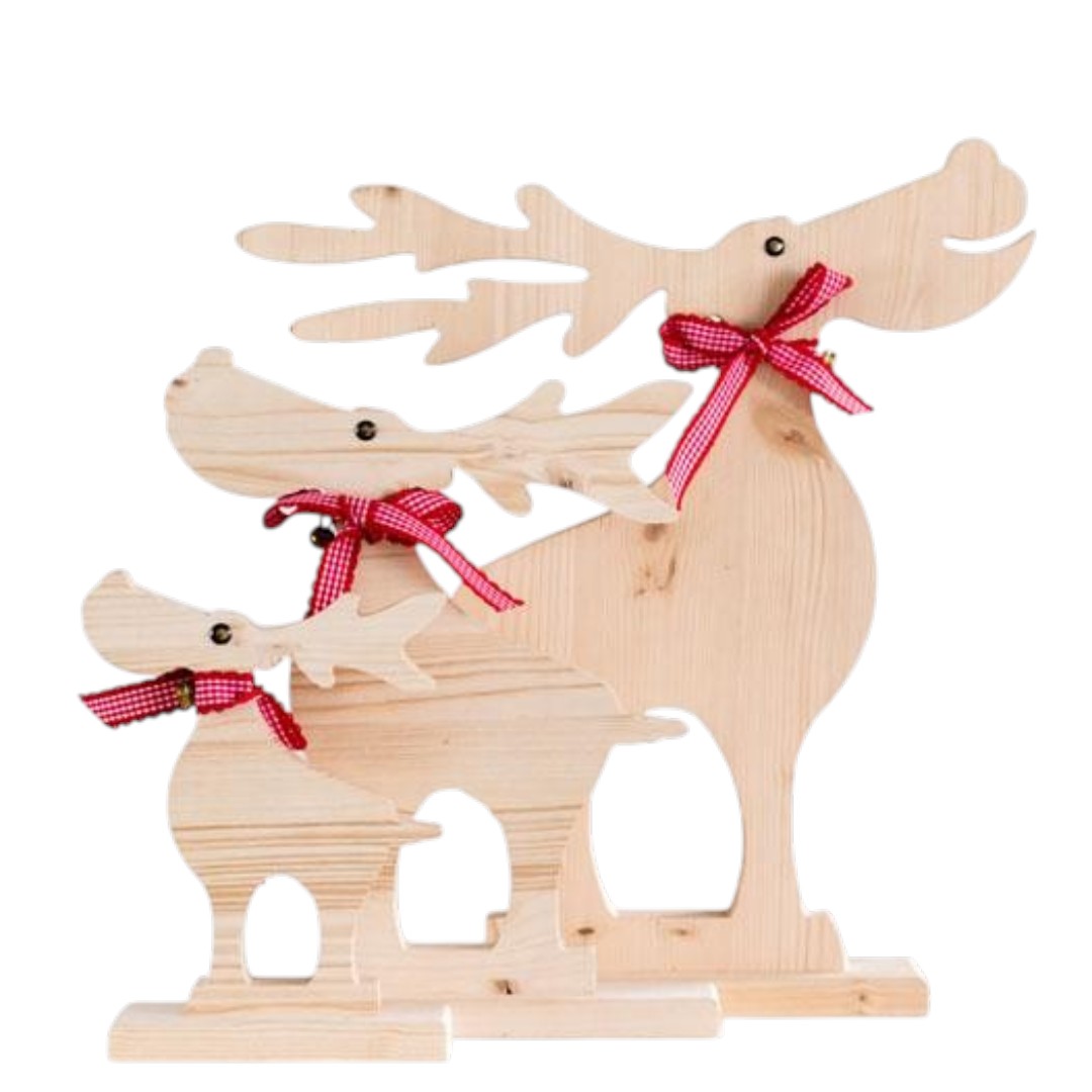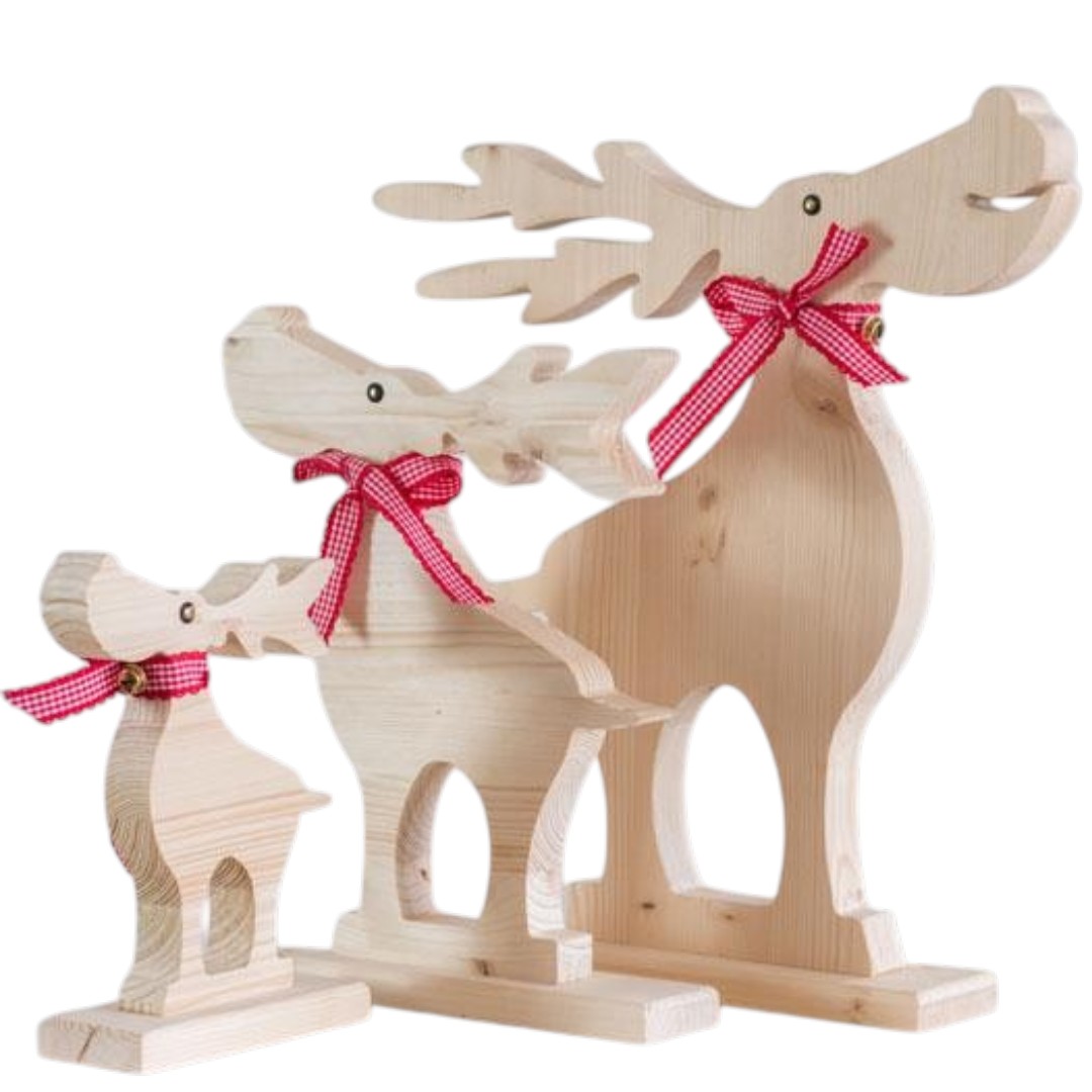 Das Holz unterstreicht den Charakter dieser besonderen Dekoration. Ein schöner, handgearbeiteter Deko-Elch aus Holz mit fröhlichem Gesicht und einem Wollschal um den Hals.