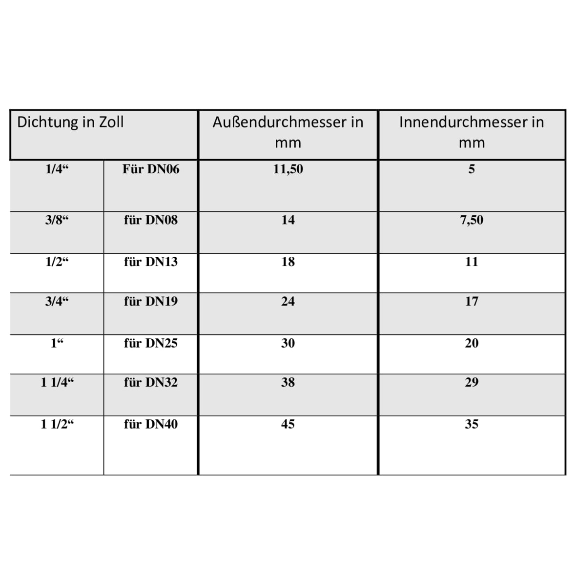 Sie erhalten Flachdichtungen für Heizungs- und Sanitärinstallation. Alle Dichtungen sind aus AFM mit einer Stärke von 1 mm.