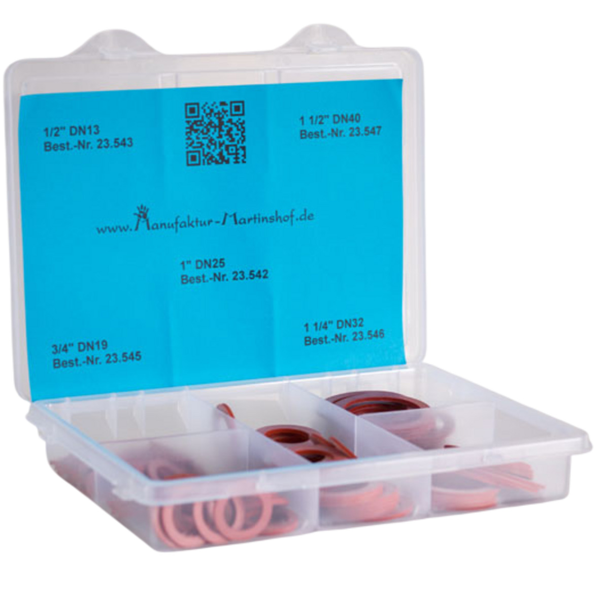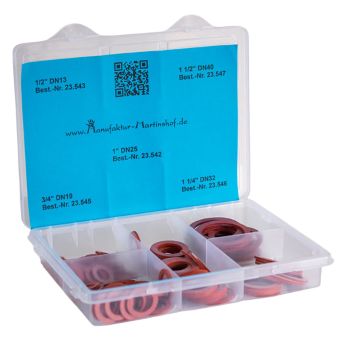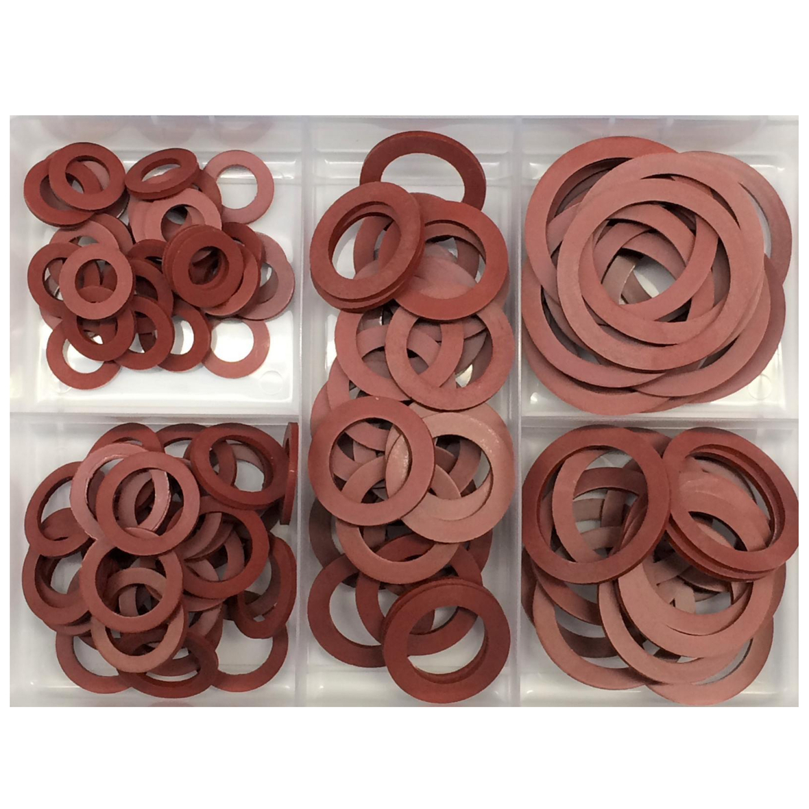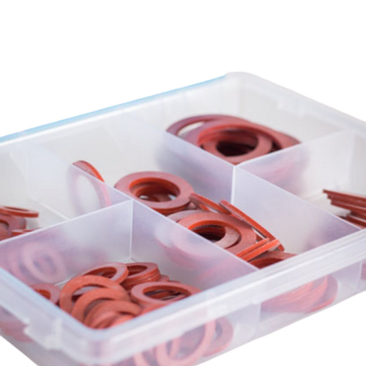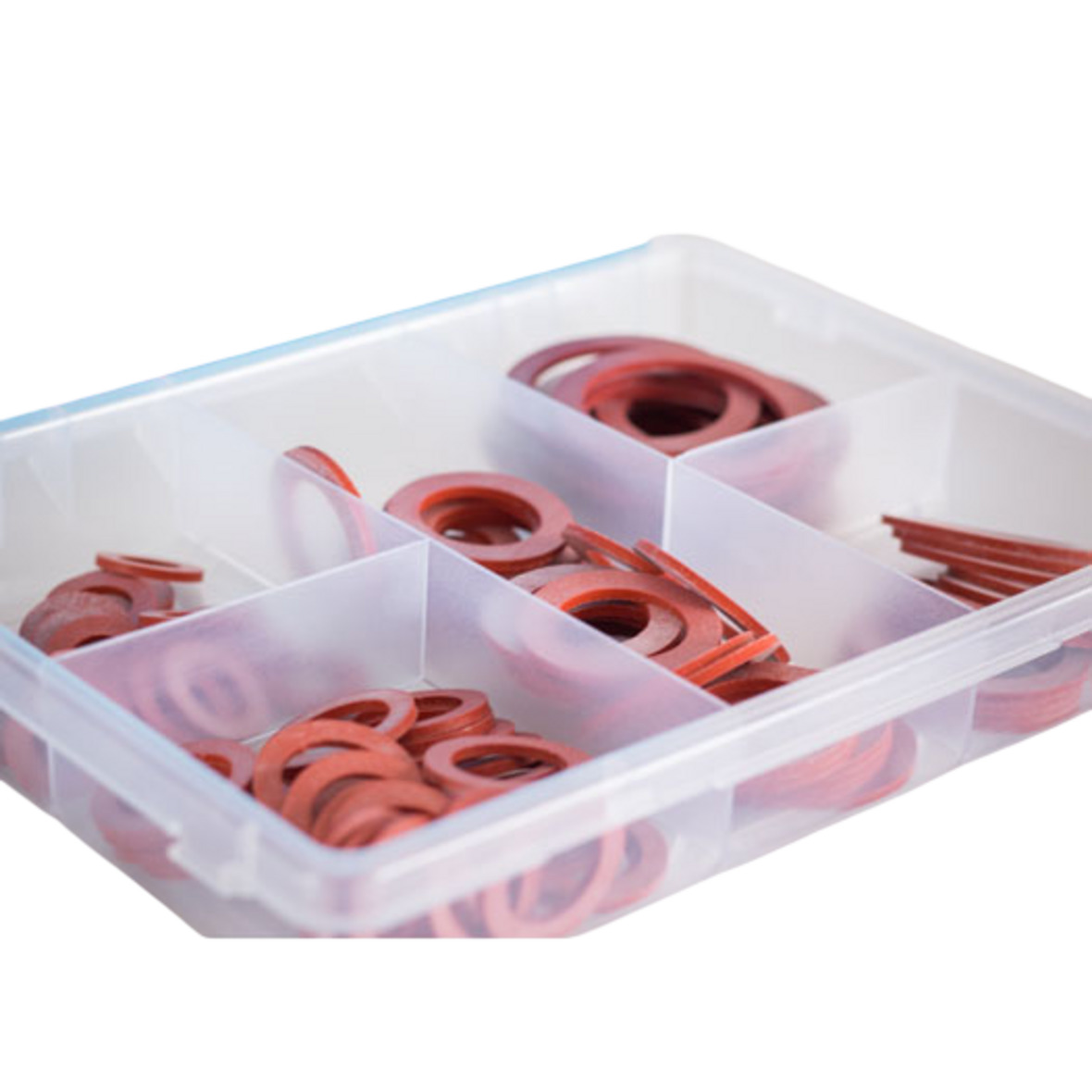 Sie erhalten ein 80er Flachdichtungsset, welches 5 verschiedenen Größen beinhaltet. Diese sind in einer Aufbewahrungsbox, die jede Größe trennt und gut organisiert lagert.