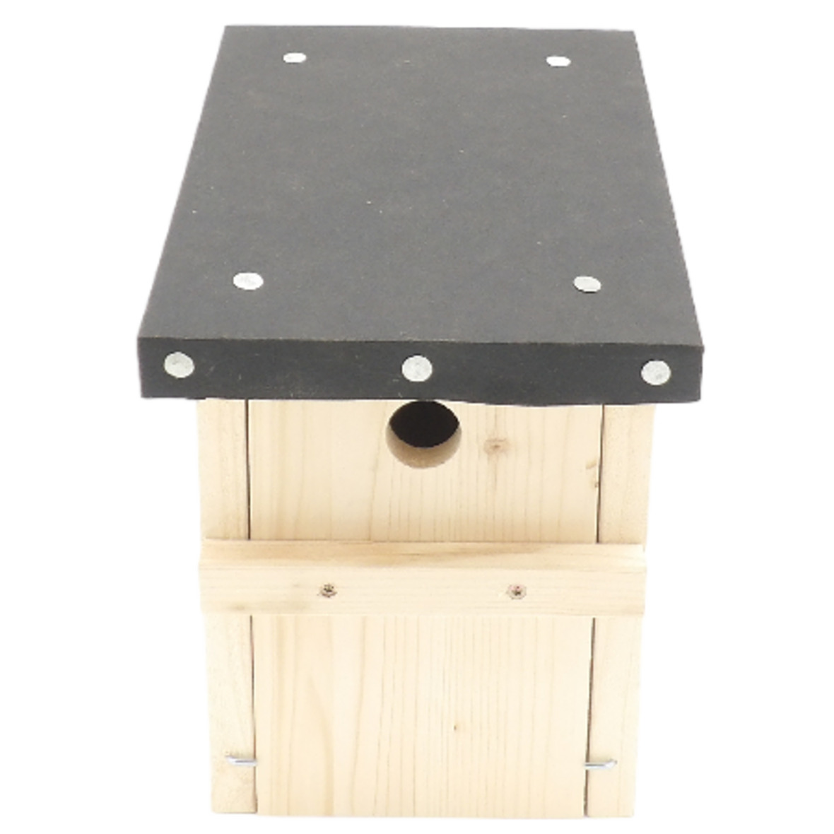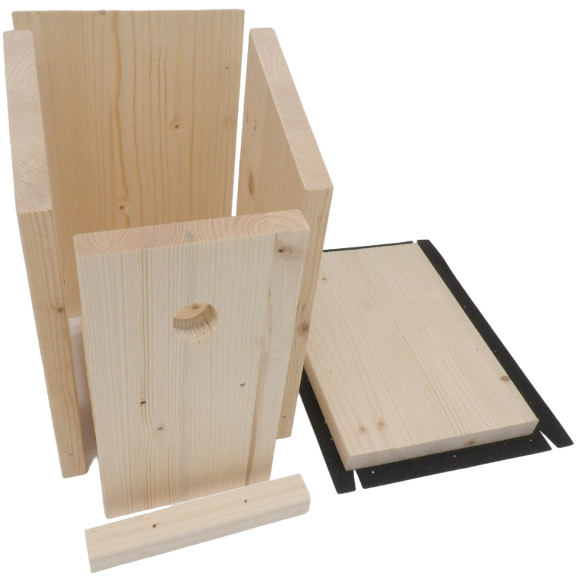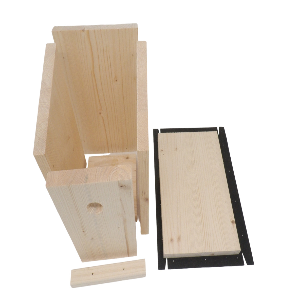 Gefertigt aus naturbelassenem, robustem Holz sorgt der Nistkasten für ein gesundes, gut belüftetes Nestklima. Er ist sowohl als Bausatz für DIY-Liebhaber, Familien und Schulen als auch fertig montiert für den sofortigen Einsatz erhältlich. Der Bausatz enthält alle zugeschnittenen Teile und lässt sich leicht zusammenbauen.