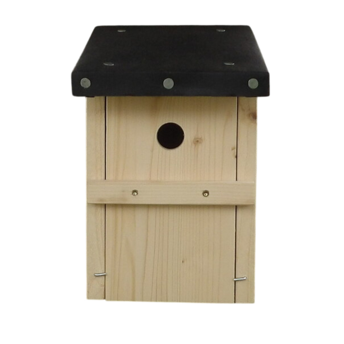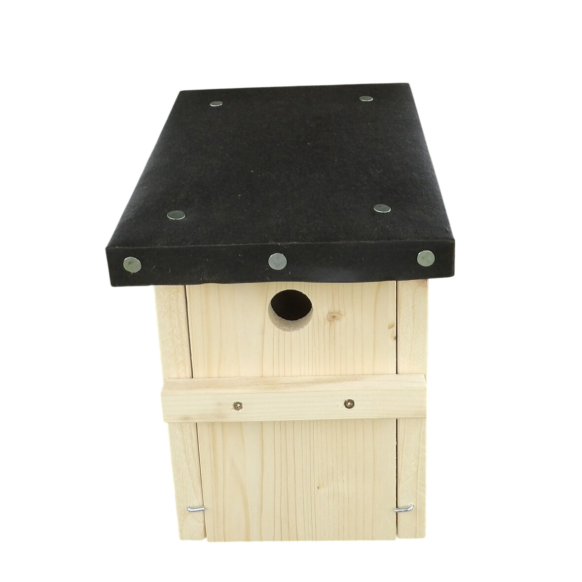 Form: klassische, rechteckige Grundform, rundes Einflugloch