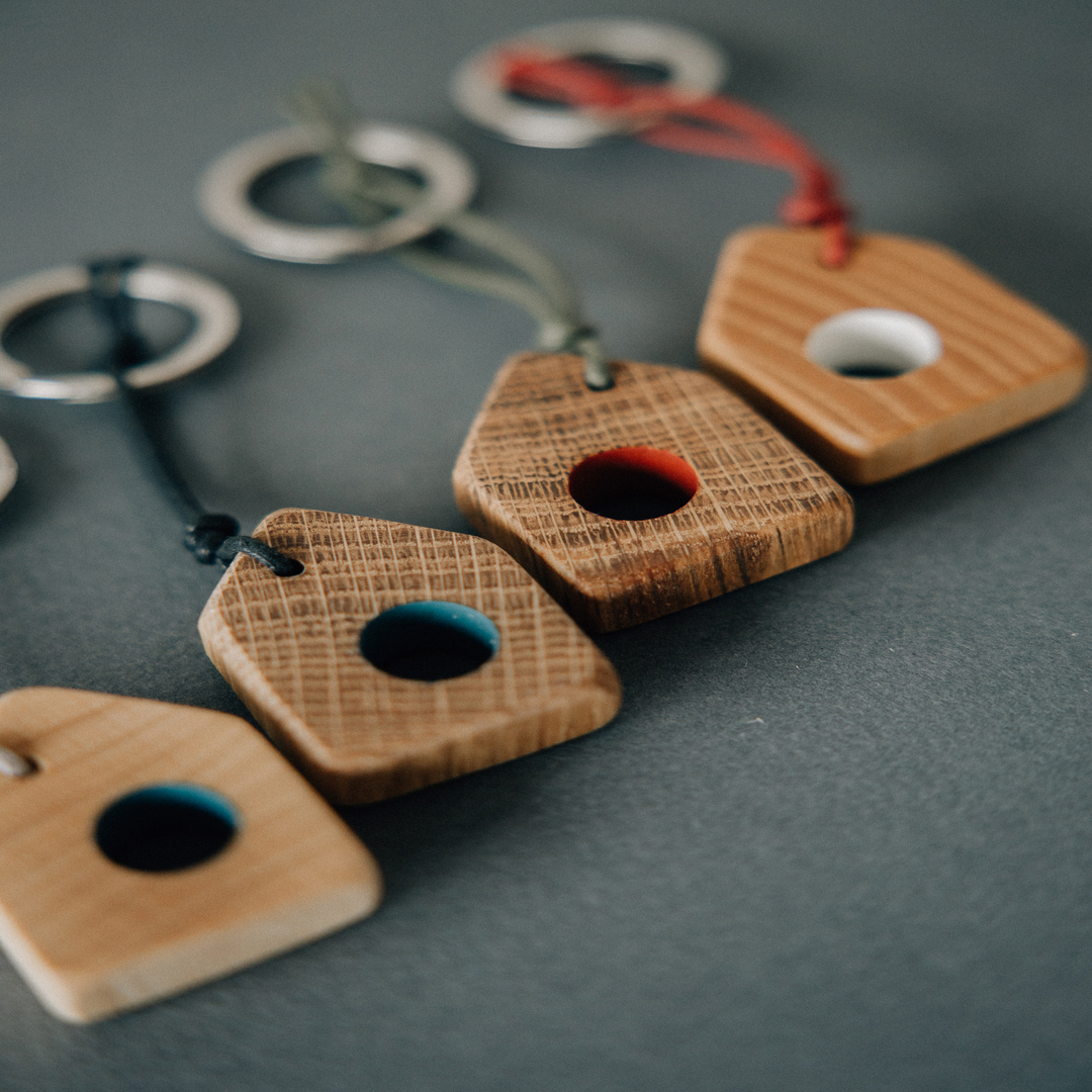 Ein Schlüsselanhänger aus Esche mit farbigem Loch – Ein stilvolles Keyholder Accessoire für den Alltag