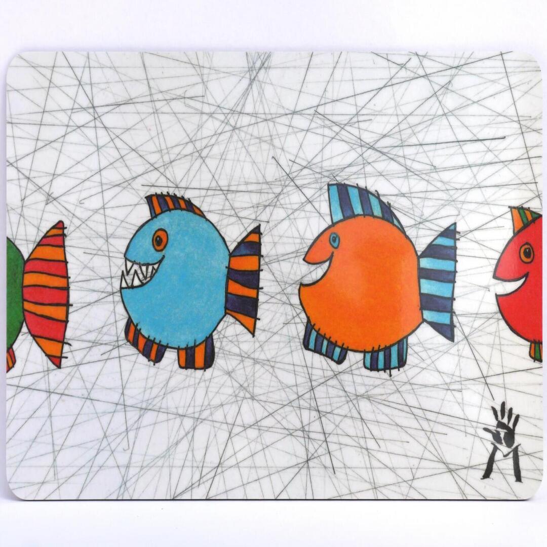 Dieses farbenfrohe Frühstücksbrett bringt gute Laune an jeden Tisch. Die Brettchen sind mit verschiedenen individuellen und liebenswerten Motiven versehen welche von den Künstlern unserer Werkstatt für behinderte Menschen entworfen wurden.