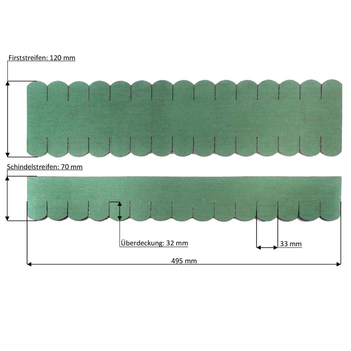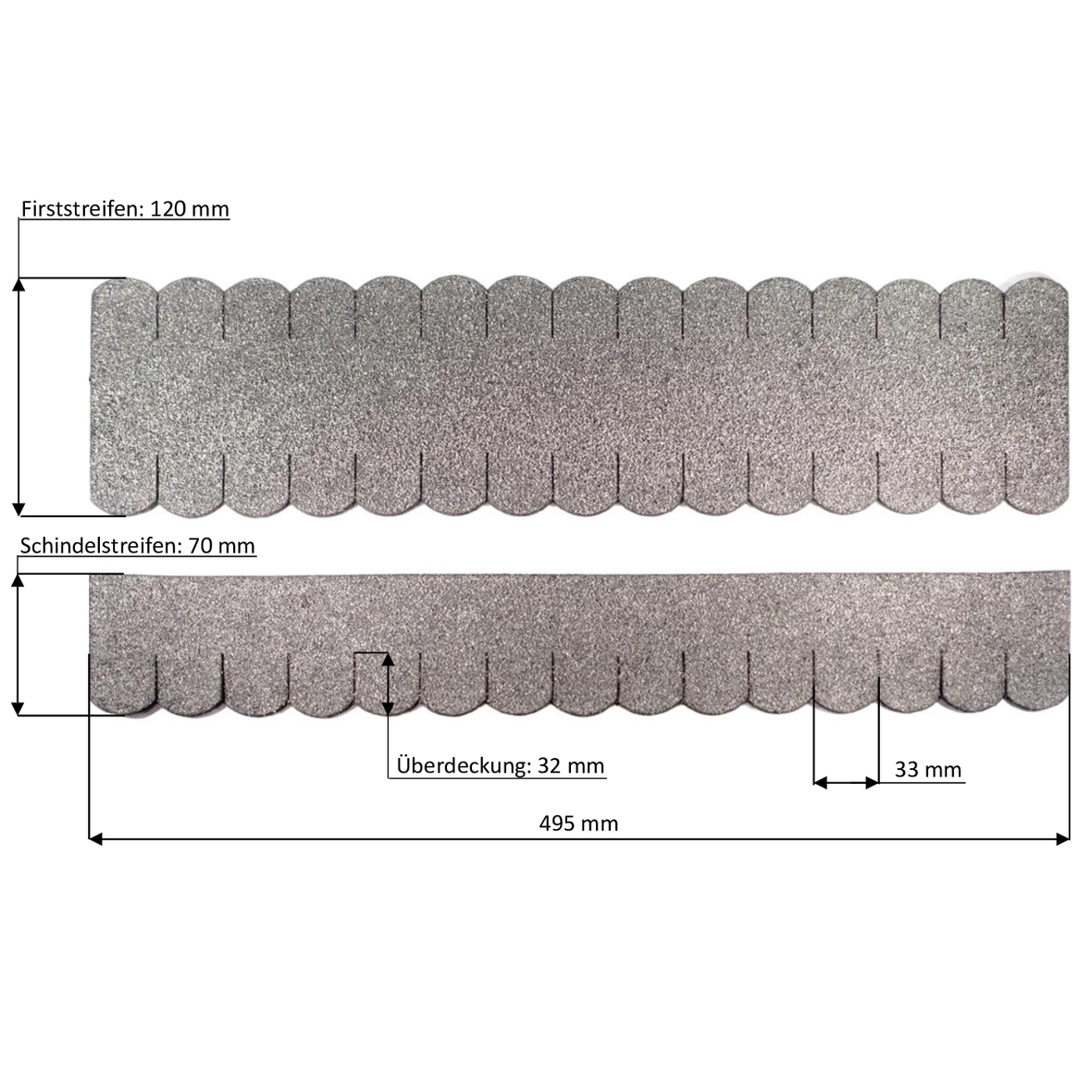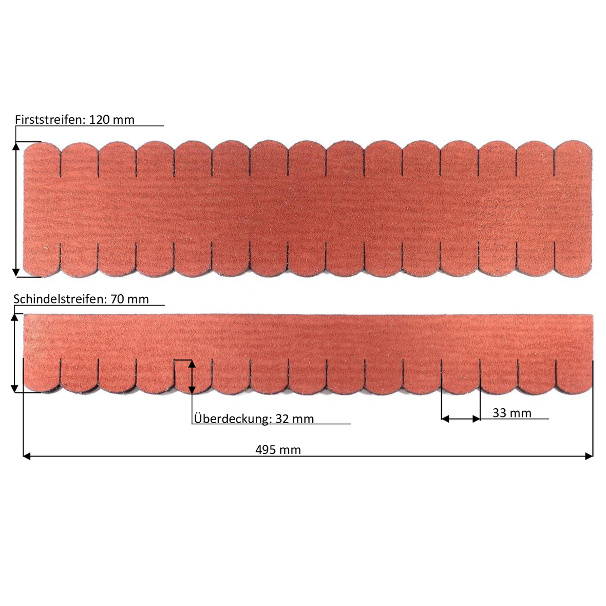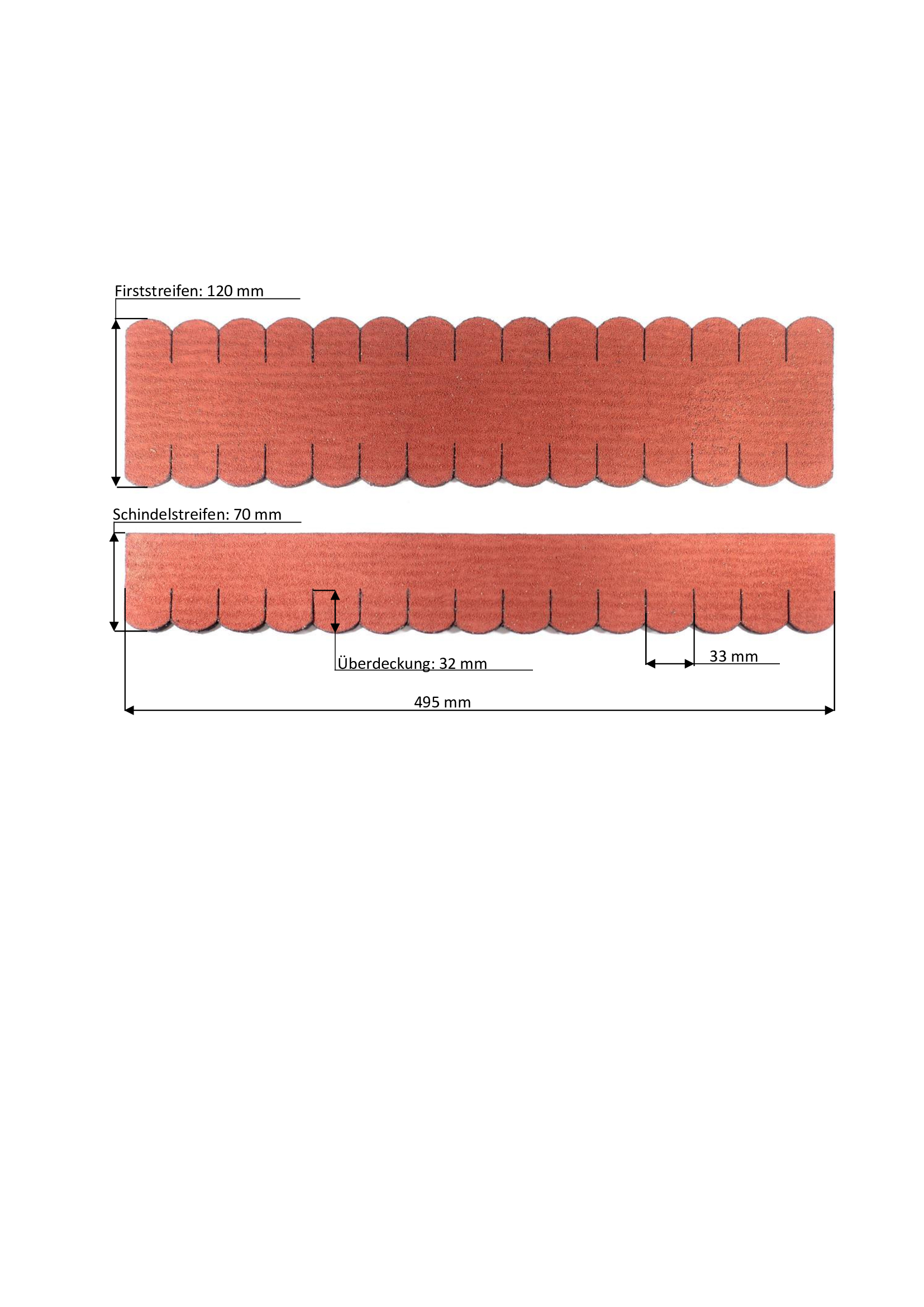 – Dachschindel-Streifen: 495 mm lang, 70 mm breit