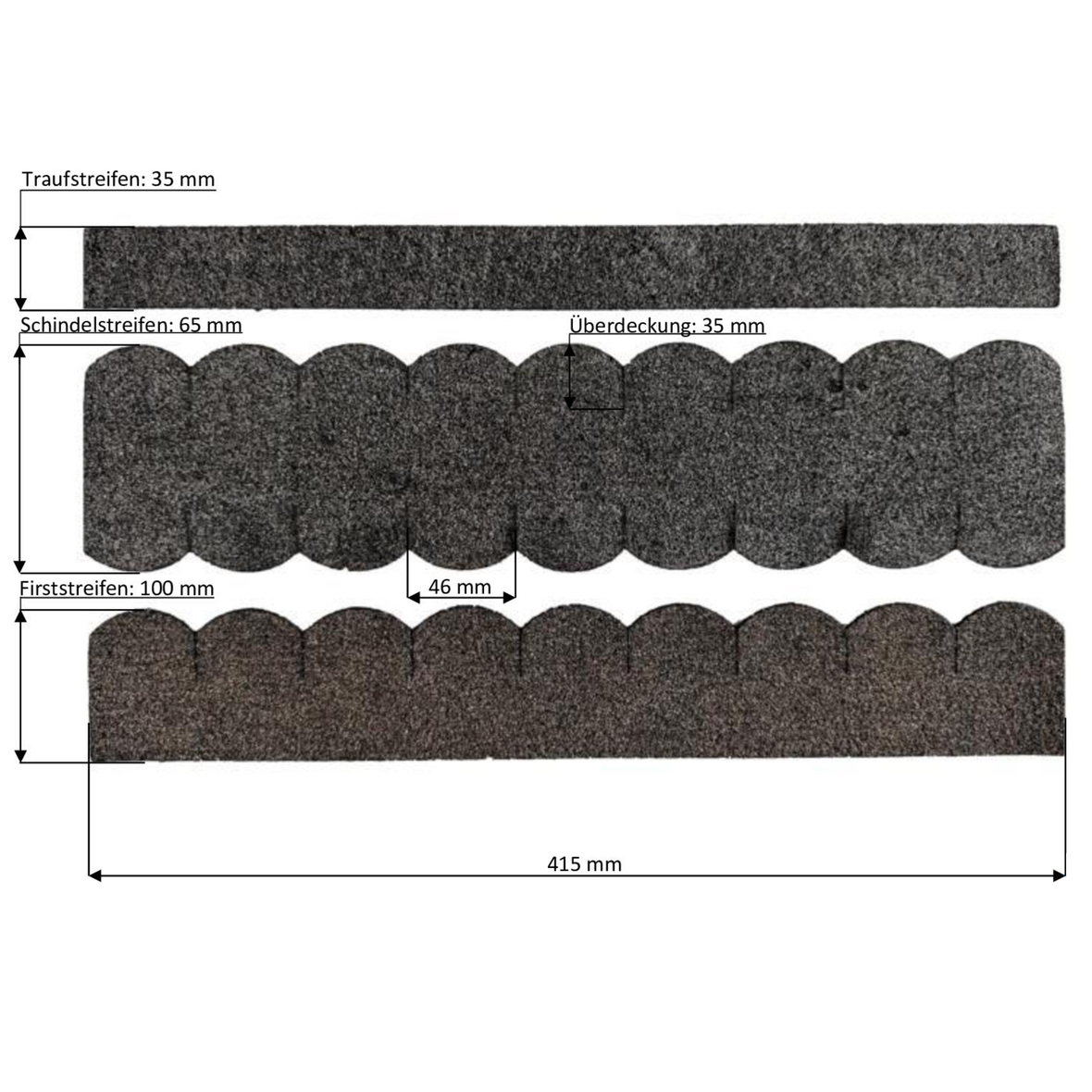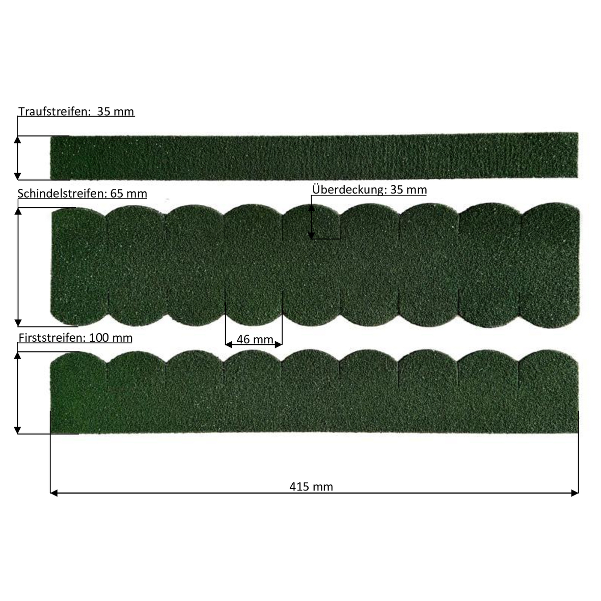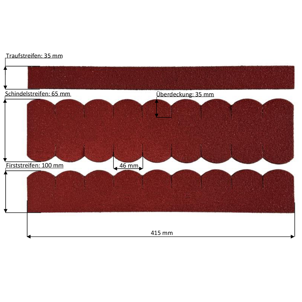 – Dachschindel-Streifen: 415 mm lang, 65 mm breit