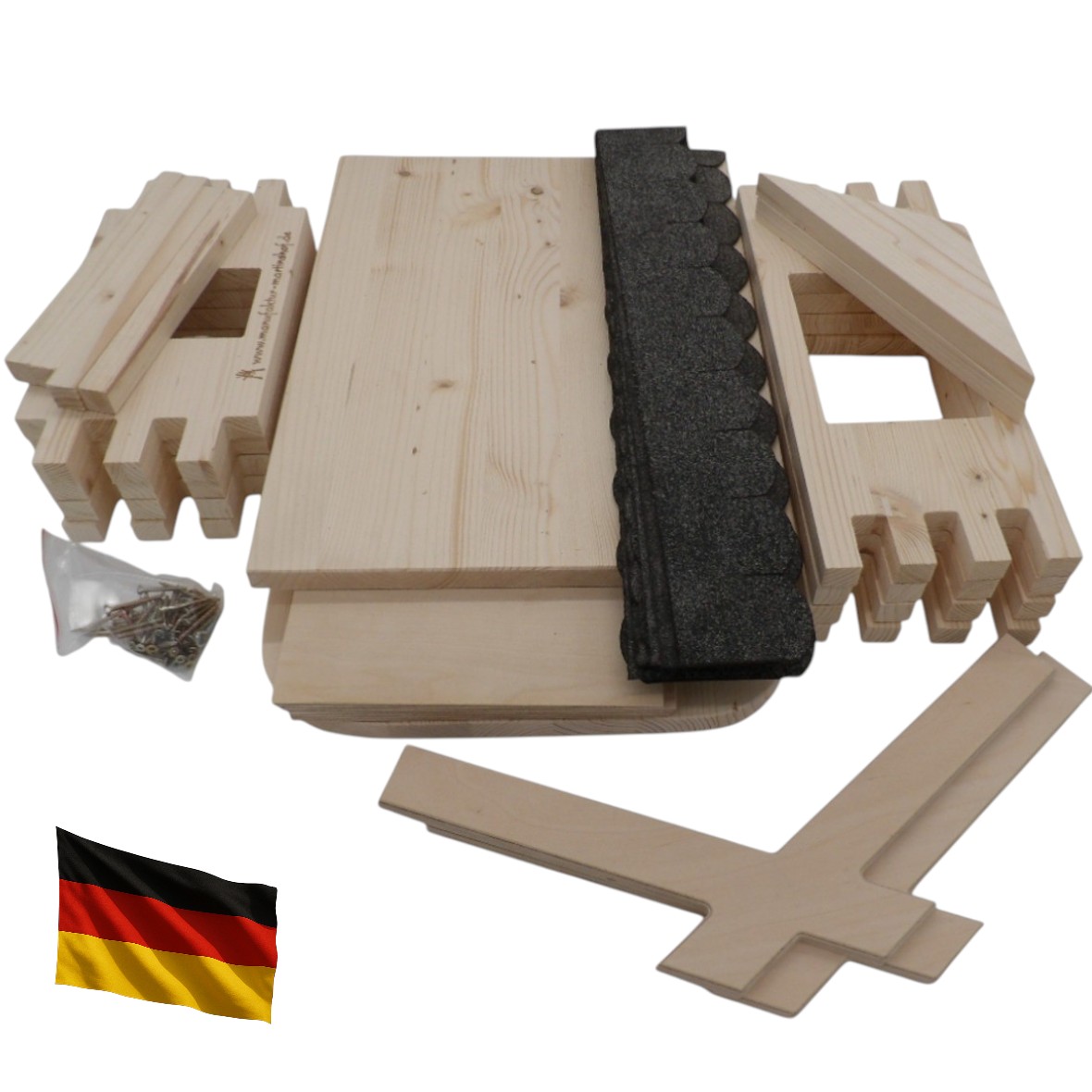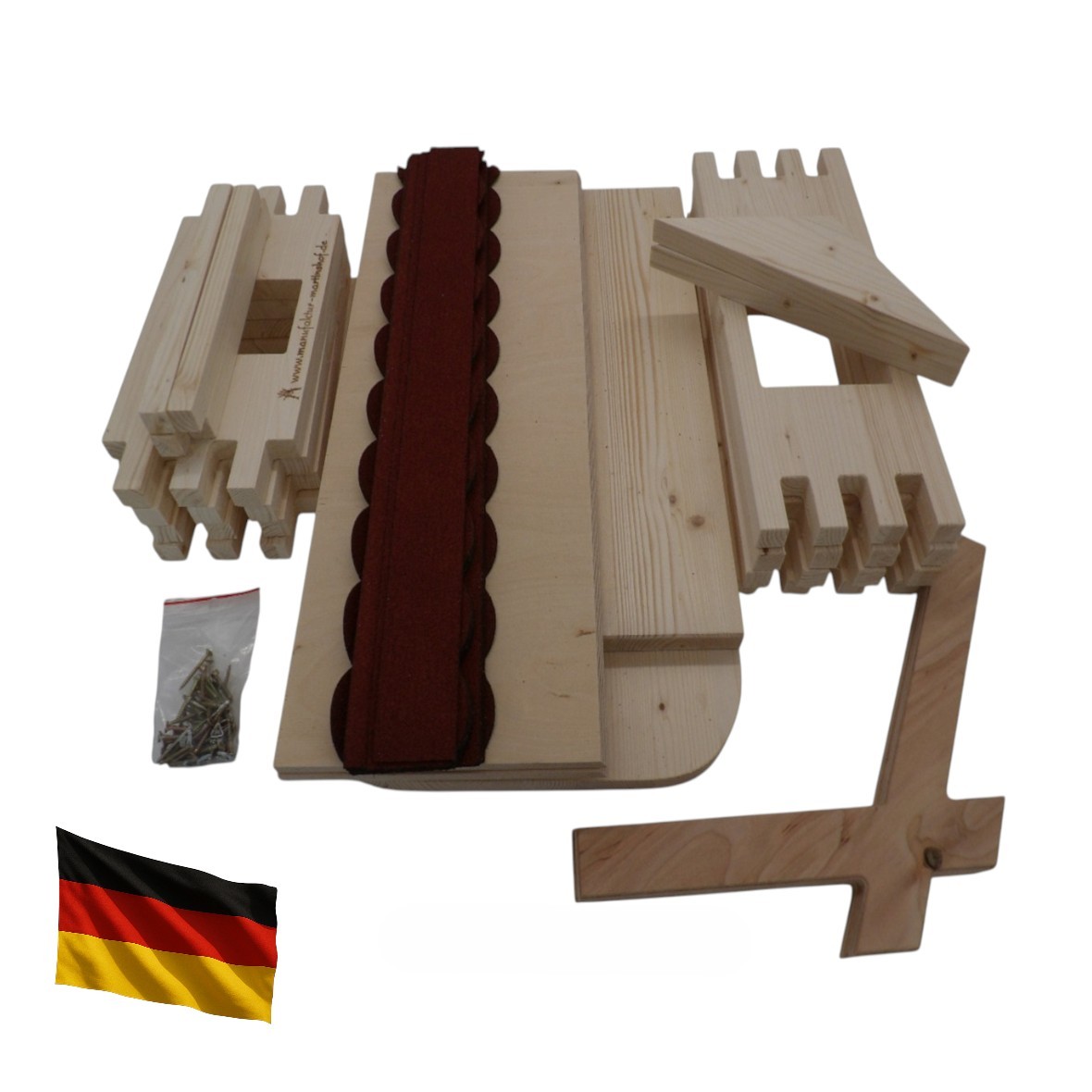 Charlie ist unser größtes Vogelhaus. Es umfasst zwei Etagen und bietet somit noch mehr Vögeln einen Futterplatz. Beide Etagen lassen sich zum Reinigen von der jeweiligen Bodenplatte abnehmen. Um noch mehr Futtermöglichkeiten zu bieten, besitzt das Haus zwei Haken an denen Meisenknödel befestigt werden können. Für eine bessere Anflugmöglichkeit verfügt das Haus über einen Balkon.
