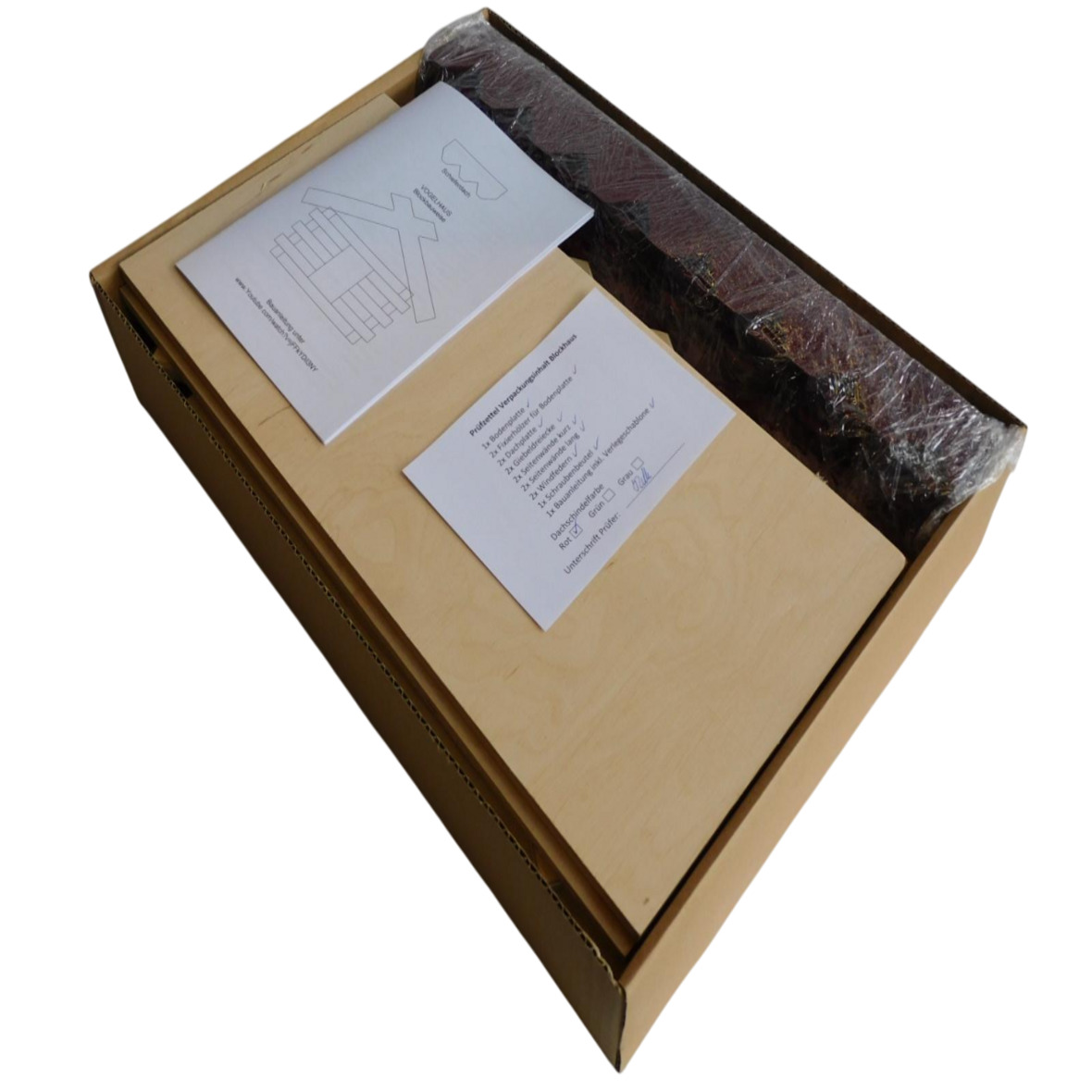 Zum Eindecken des Vogelhauses mit den dazu gelieferten Dachschindeln wird noch ein Bitumenkleber (erhältlich in unserem Shop) benötigt.