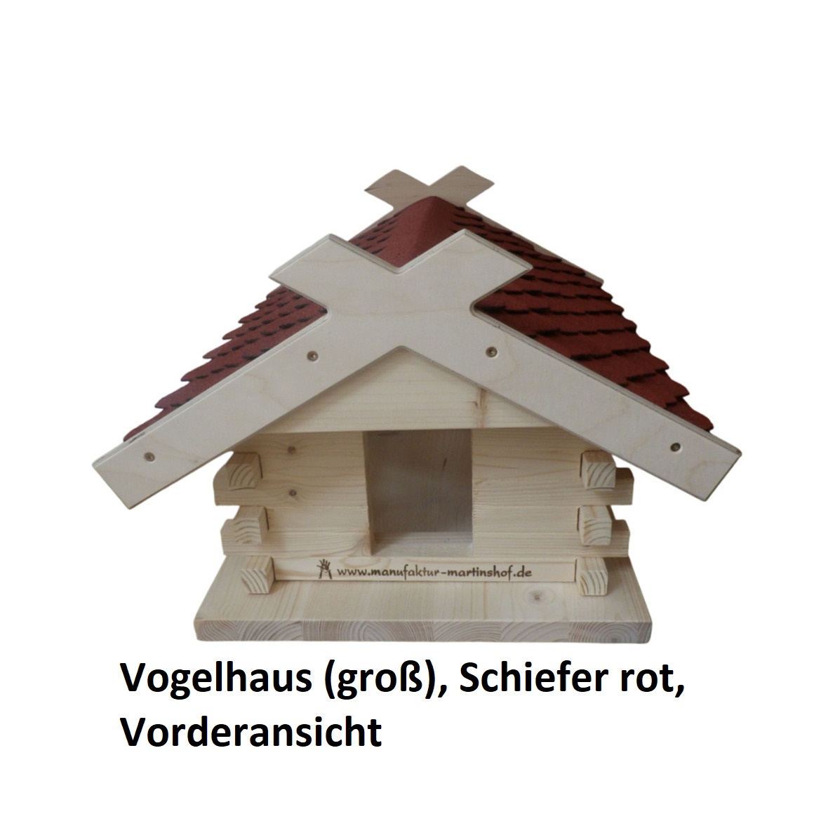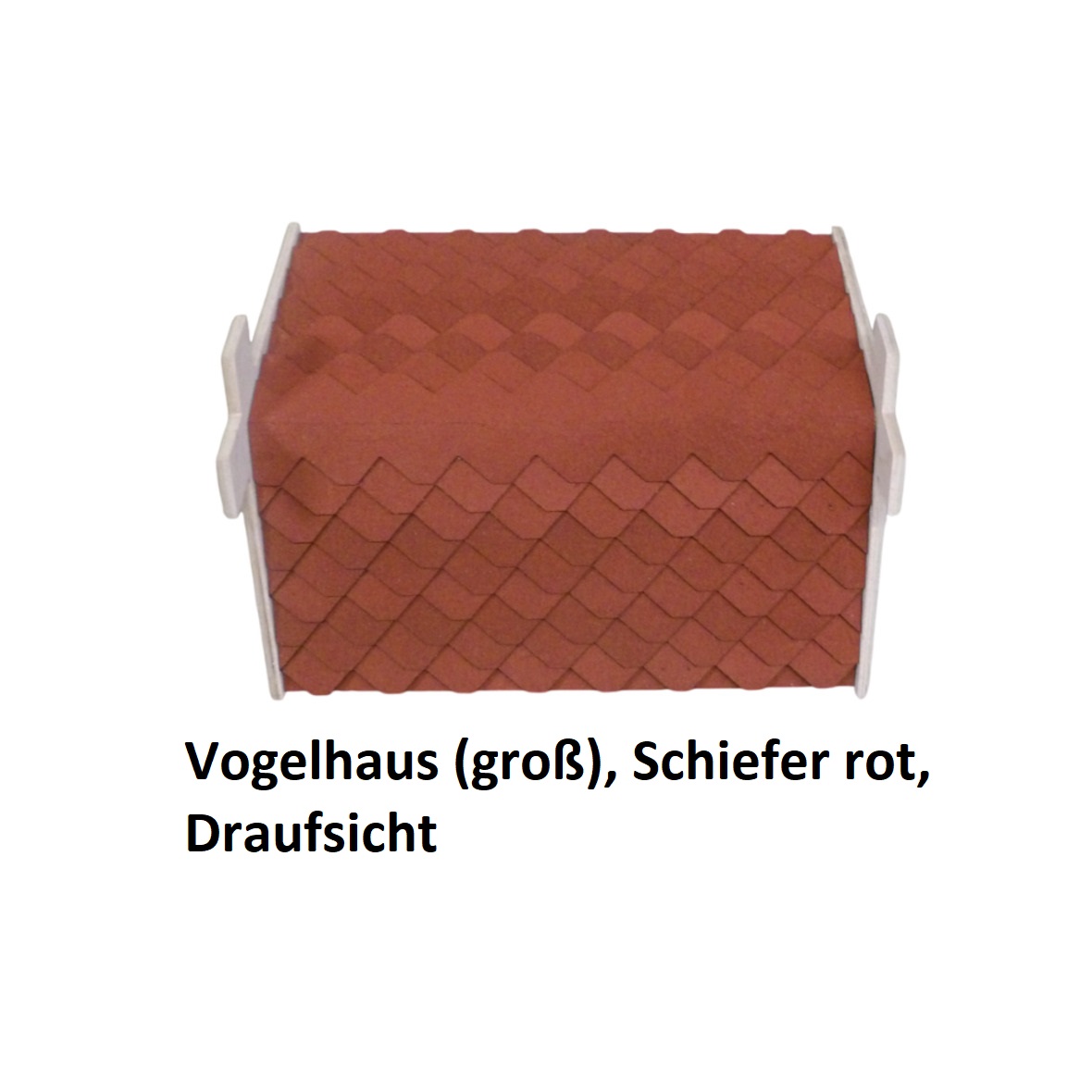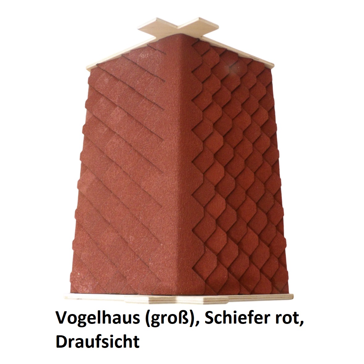 Fertig zusammengebautes Vogelhaus, Ausführung: groß, Schindel-Farben: rot, grün, grau