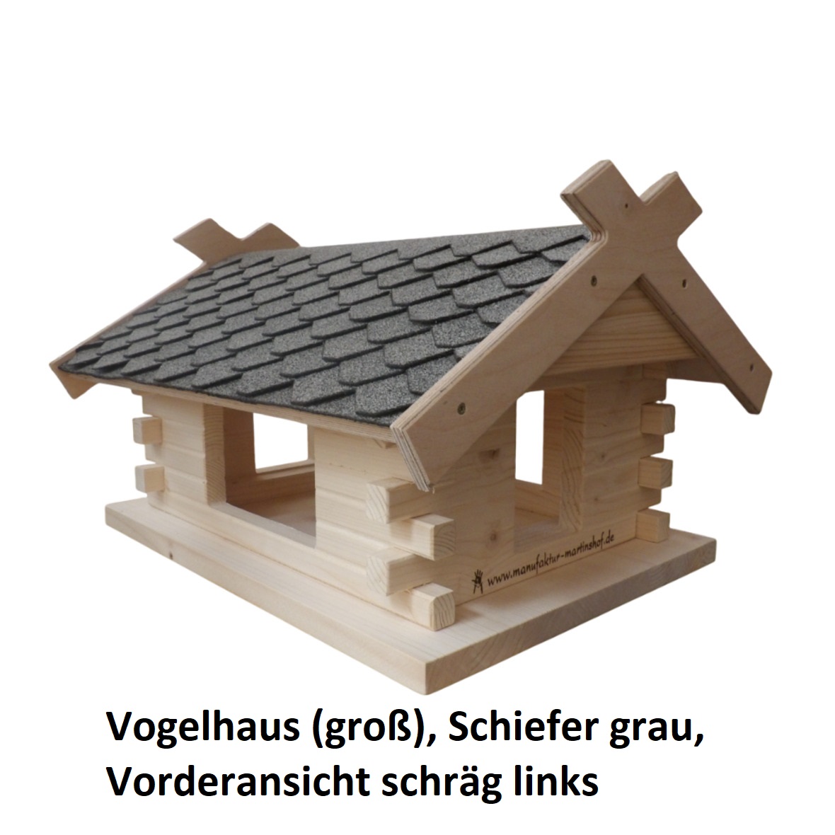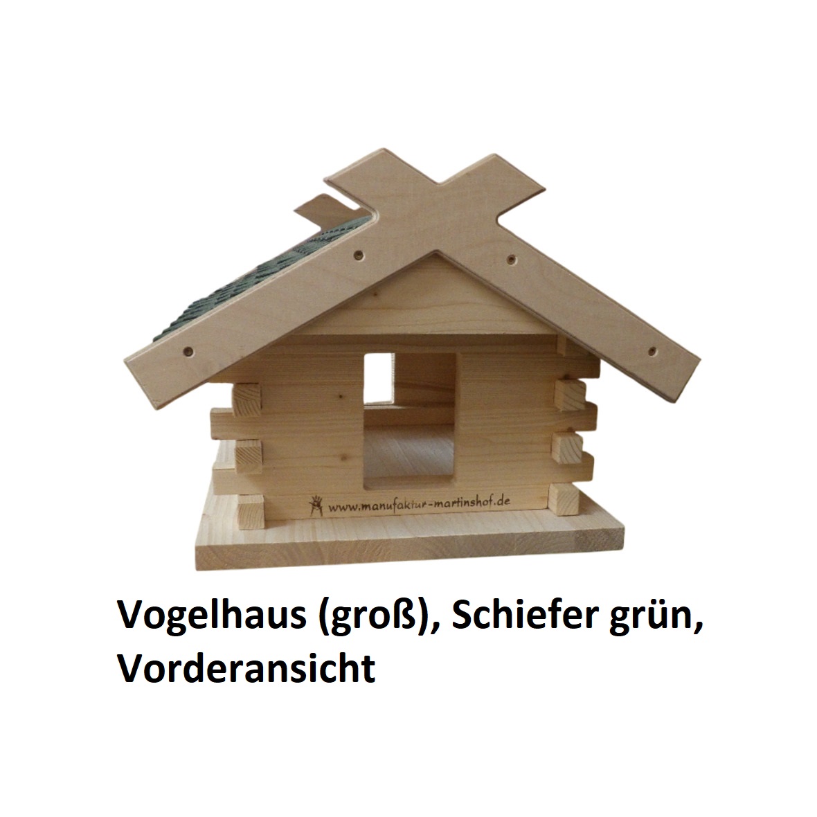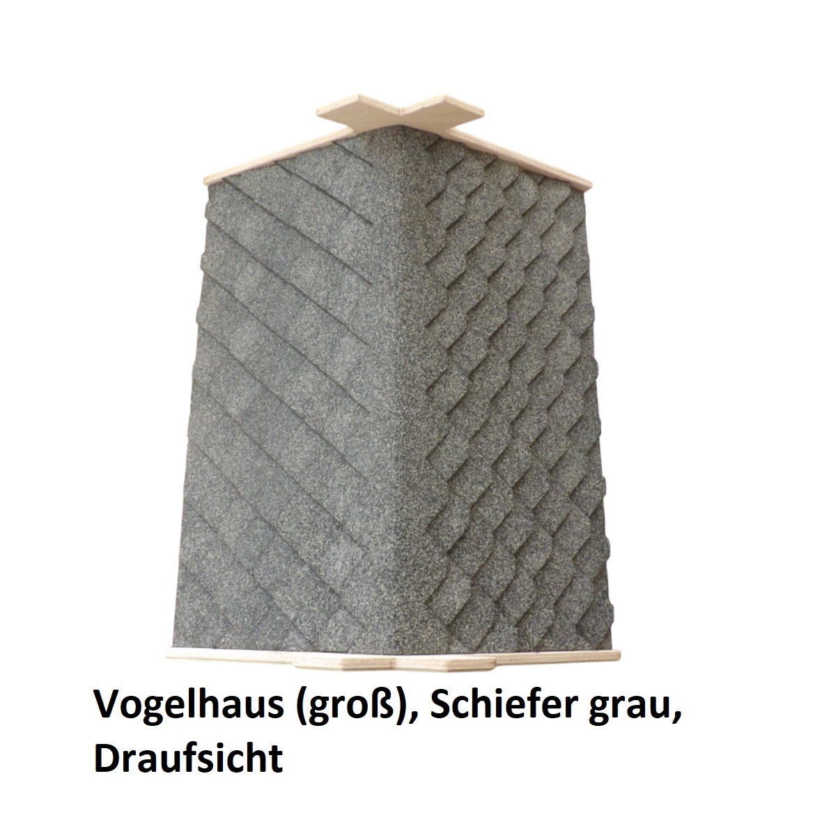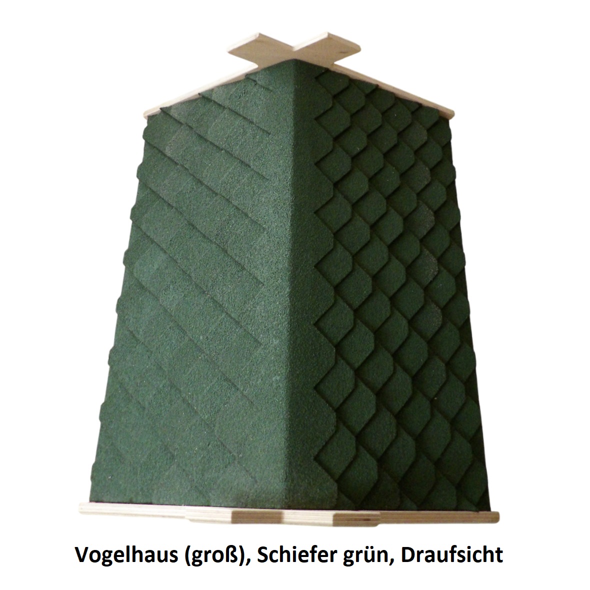 Fertig zusammengebautes Vogelhaus, Ausführung: groß, Schindel-Farben: rot, grün, grau
