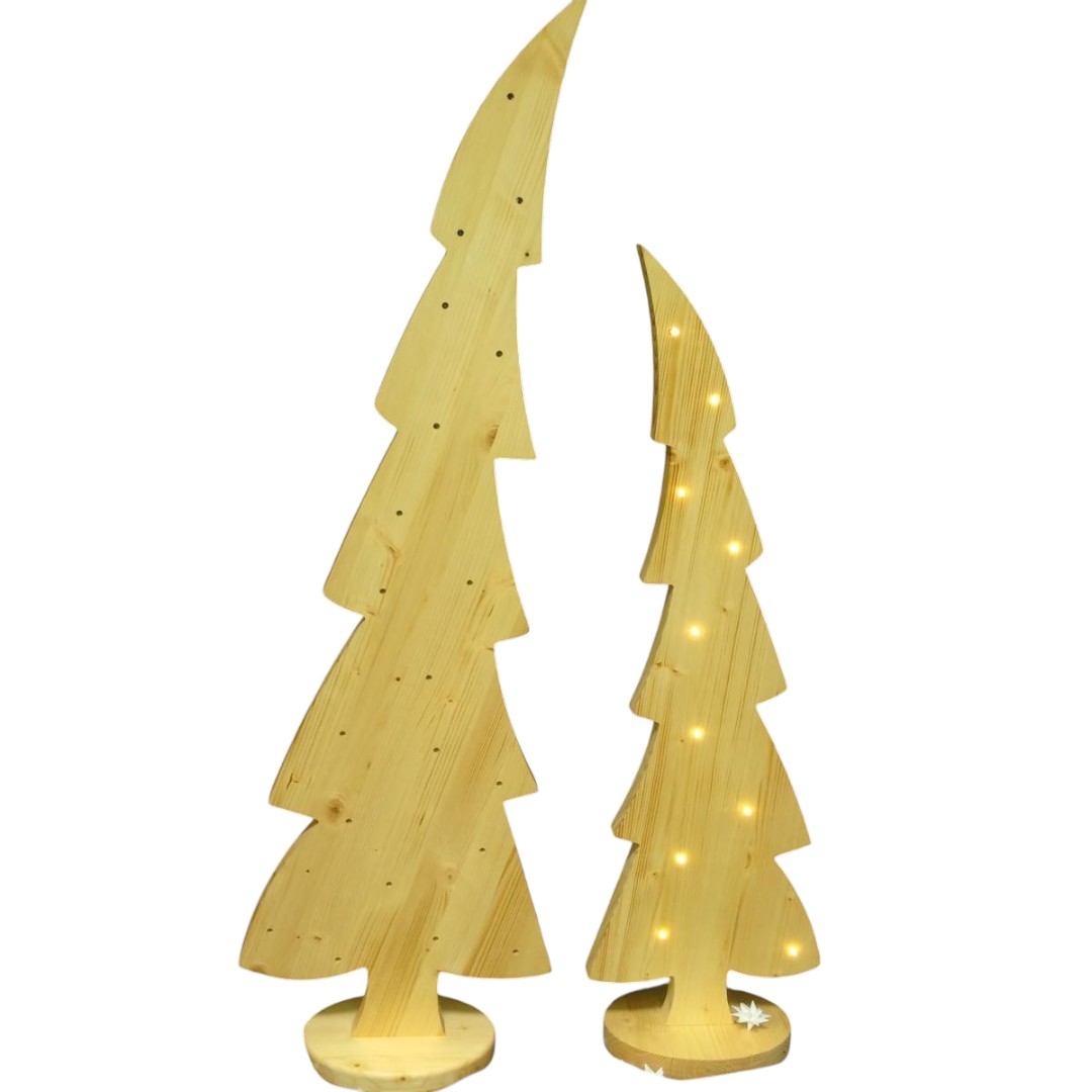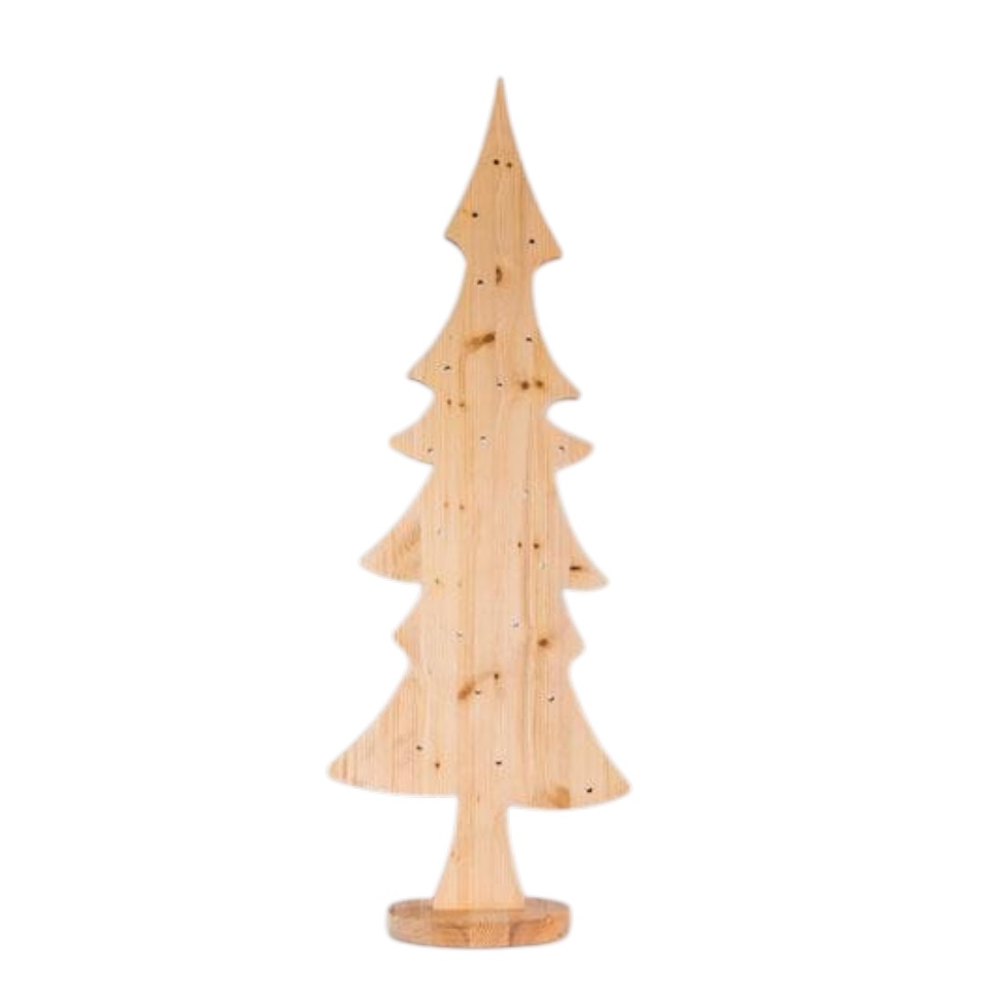 Dekorativer Tannenbaum aus Holz für die Dekoration im Haus. Eine bezaubernde Idee für Weihnachten, Ihre Wohnung kreativ, festlich zu dekorieren und zu gestalten.